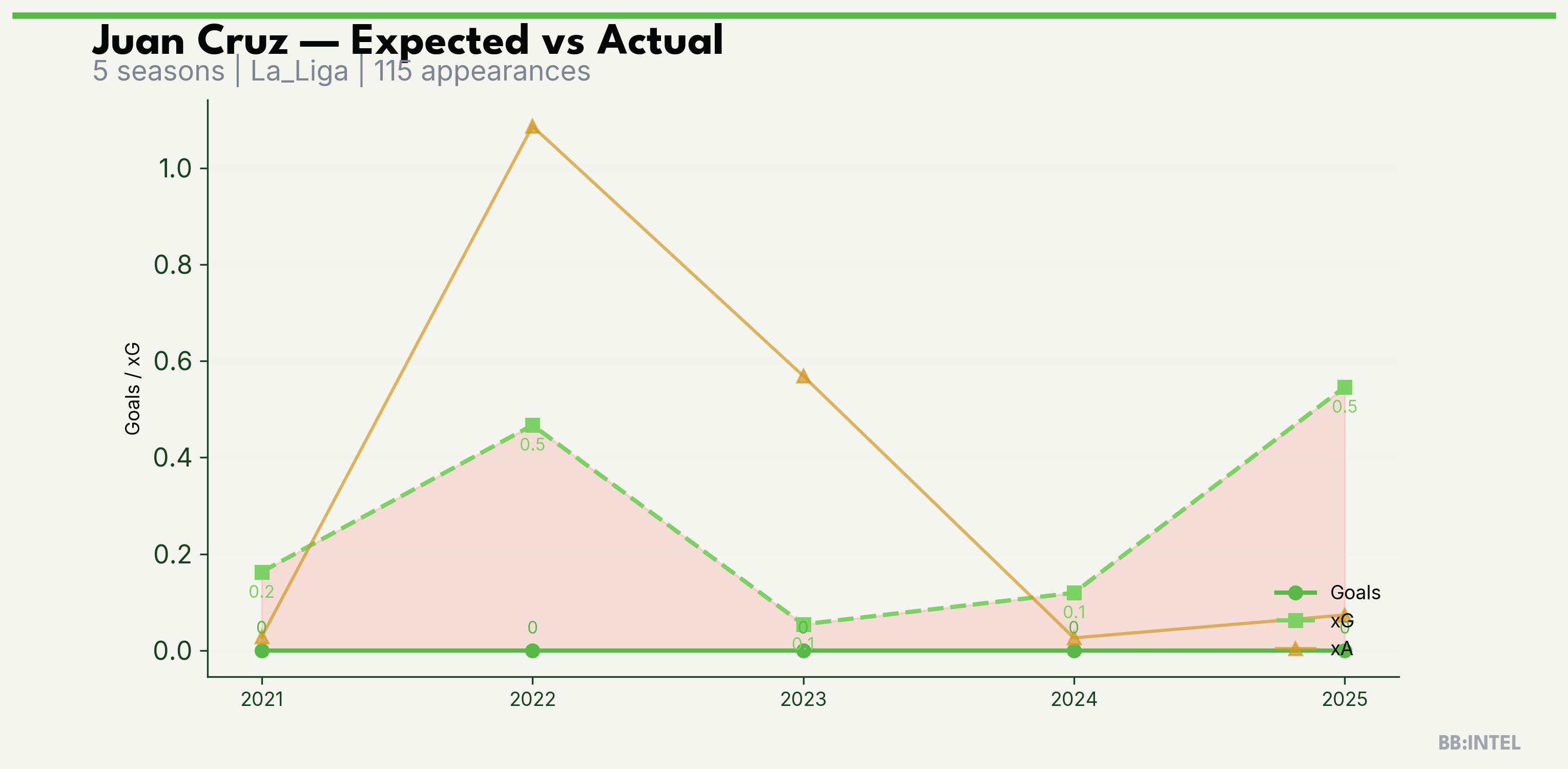 | 2025/2026 | La_Liga | 14 | 0 | 0.5 | 0.1 | 1 | -0.5 |