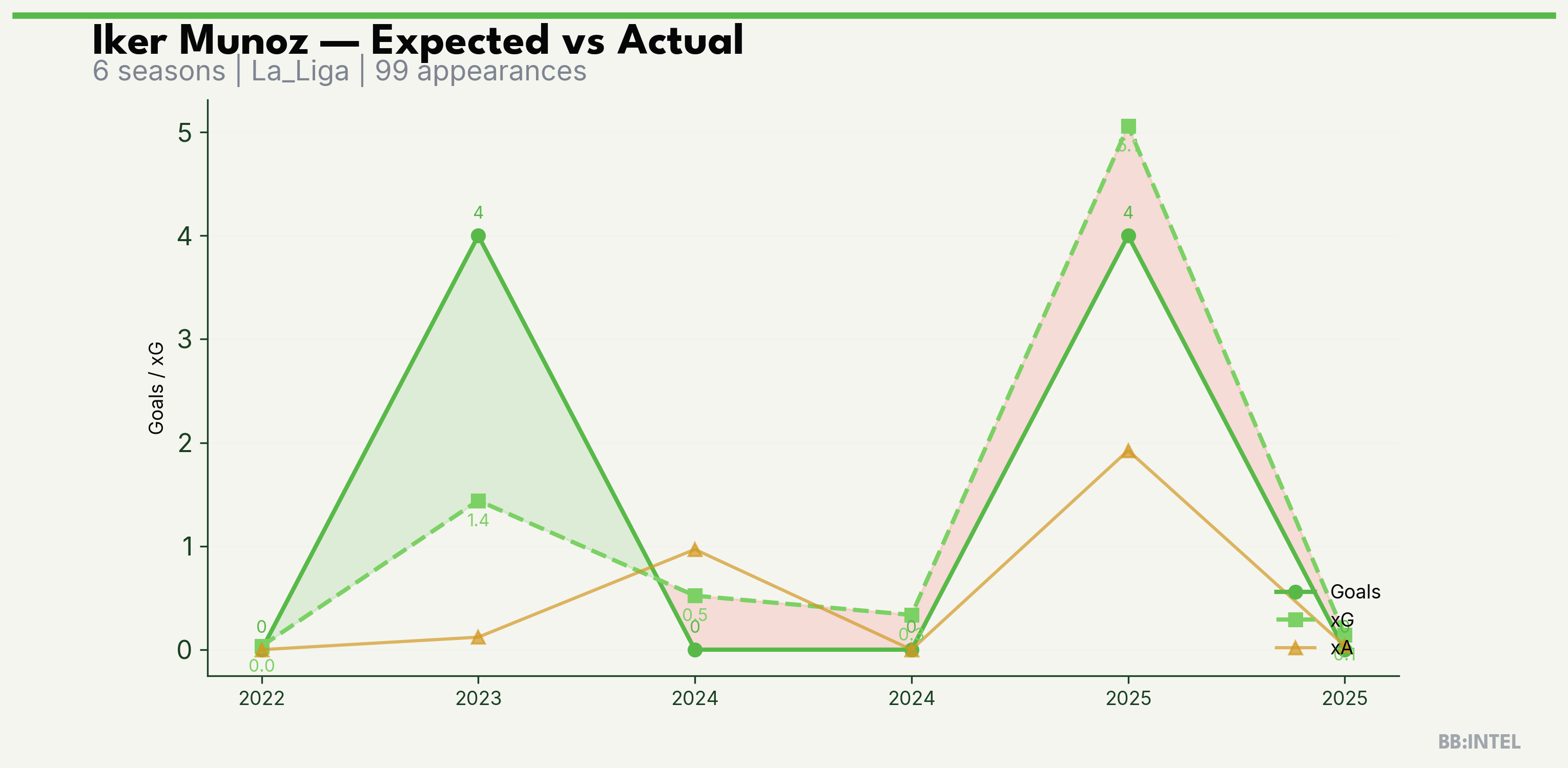 | 2025/2026 | La_Liga | 27 | 4 | 5.1 | 1.9 | 59 | -1.1 |