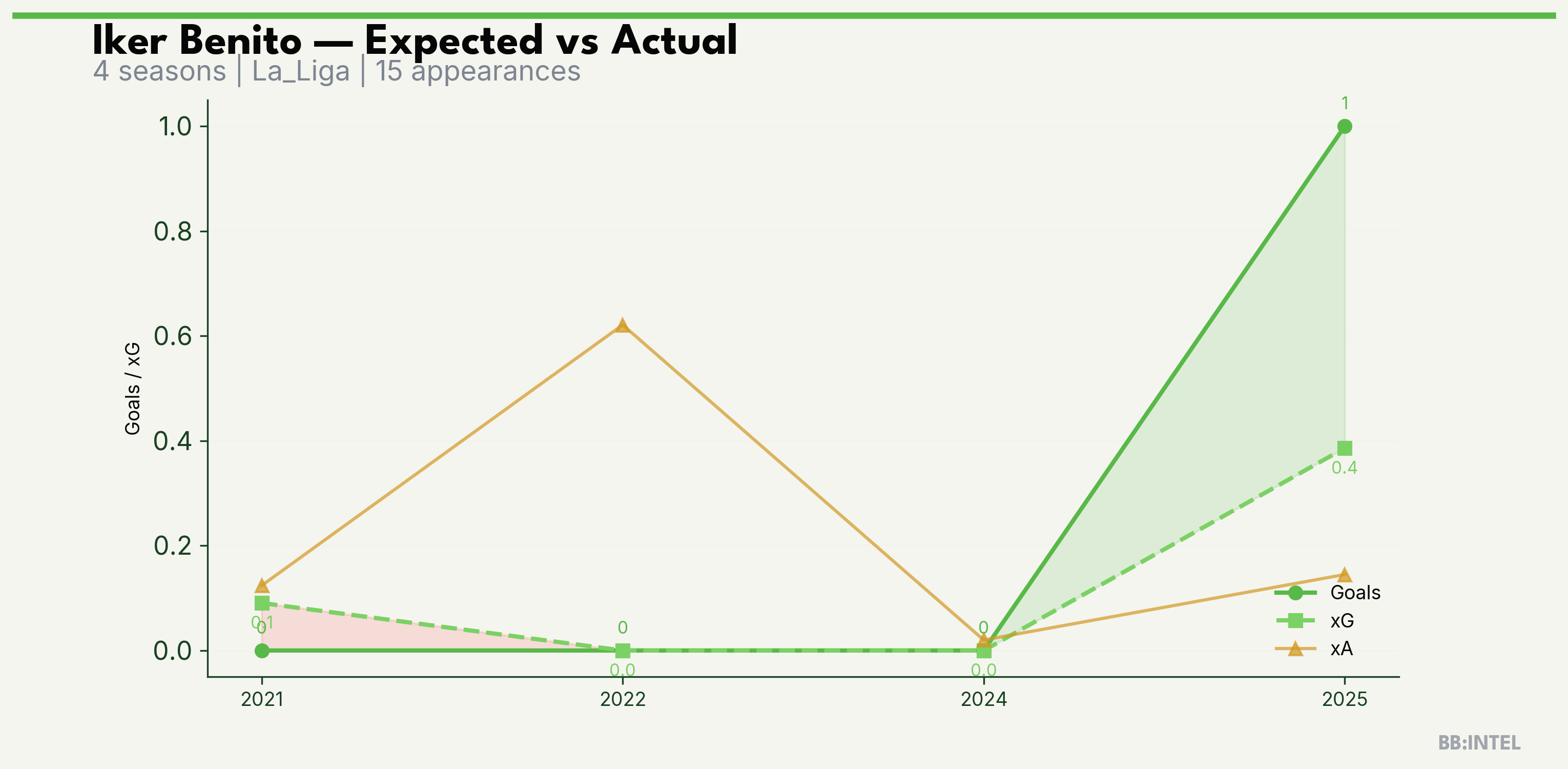 | 2025/2026 | La_Liga | 5 | 1 | 0.4 | 0.1 | 2 | +0.6 |