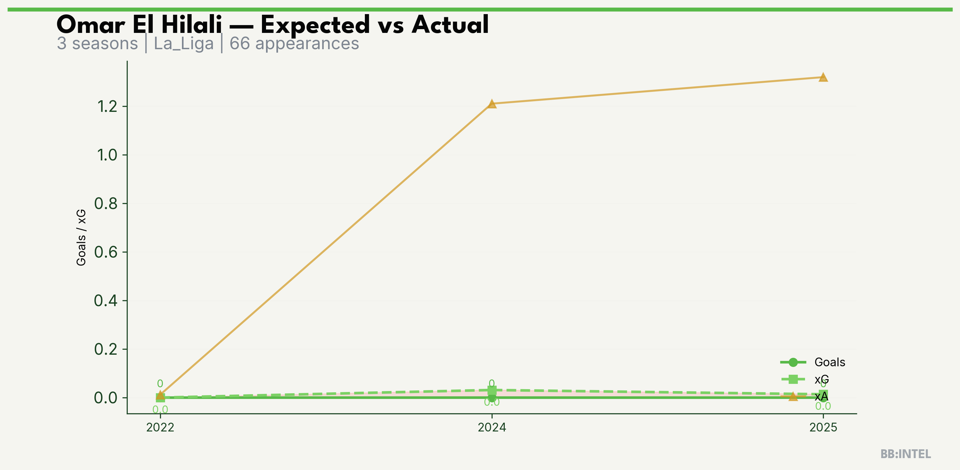| 2025/2026 | La_Liga | 25 | 0 | 0.0 | 1.3 | 1 | -0.0 |