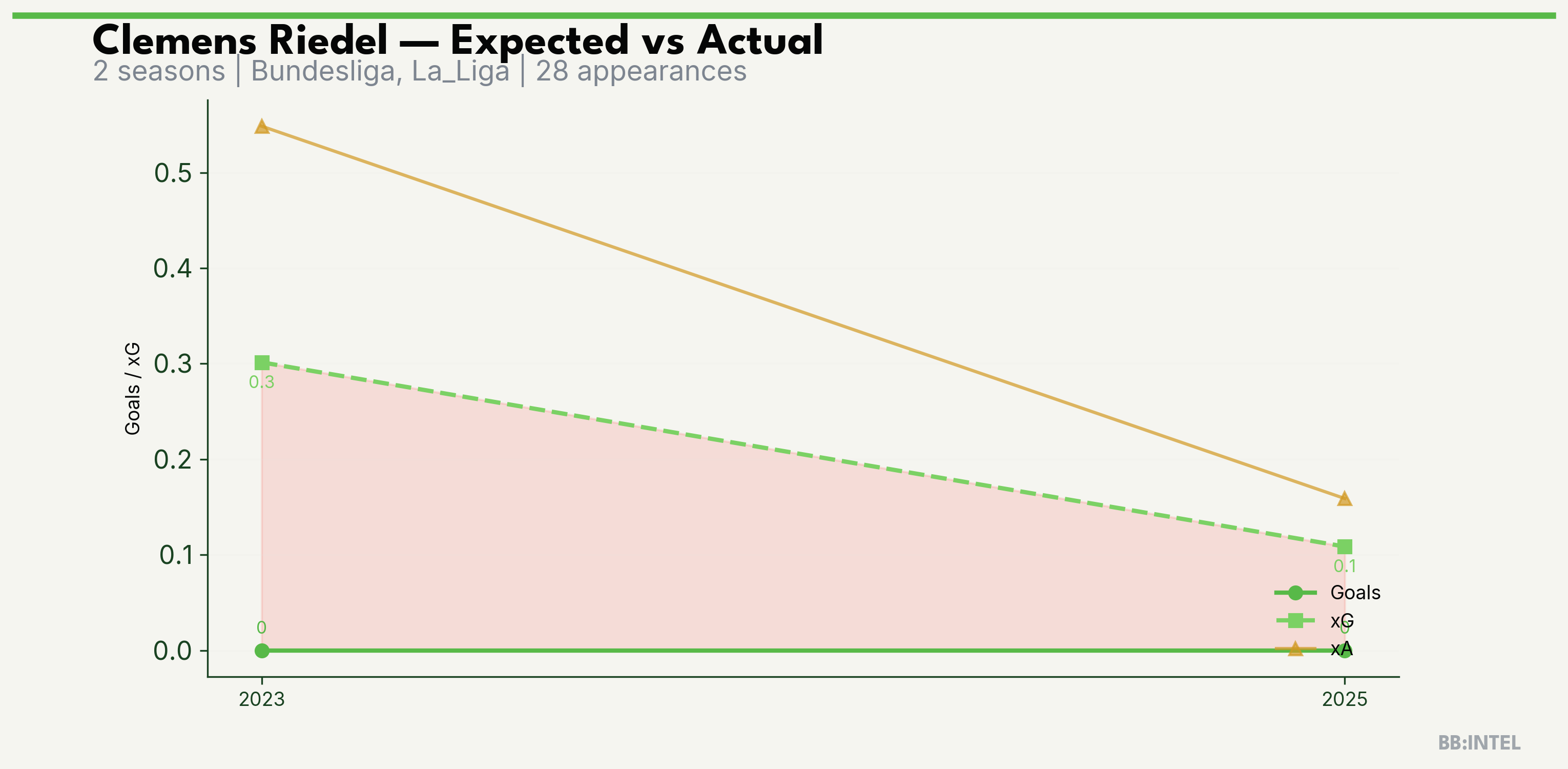 | 2023/2024 | Bundesliga | 14 | 0 | 0.3 | 0.5 | 8 | -0.3 |