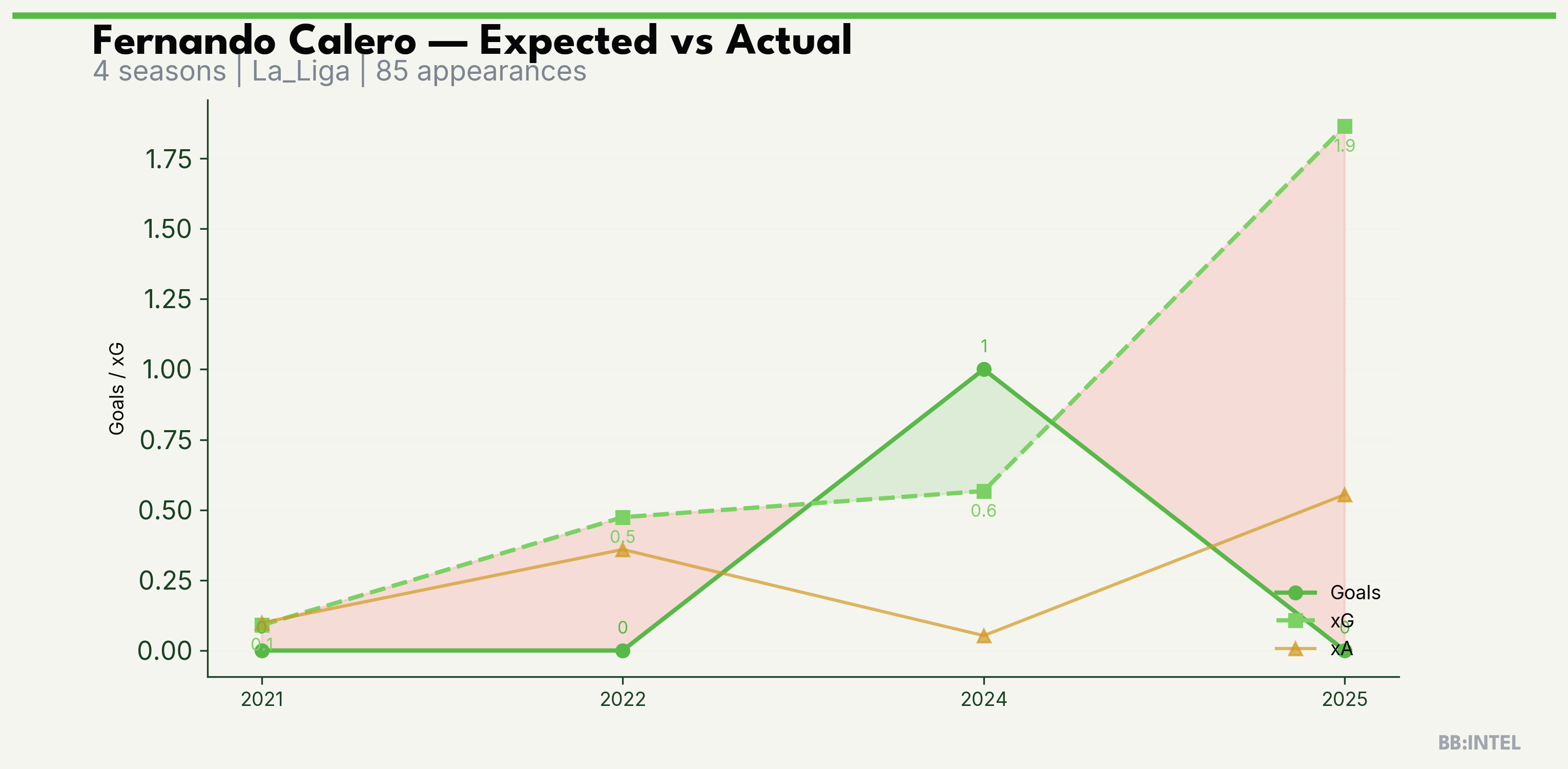 | 2025/2026 | La_Liga | 21 | 0 | 1.9 | 0.6 | 9 | -1.9 |