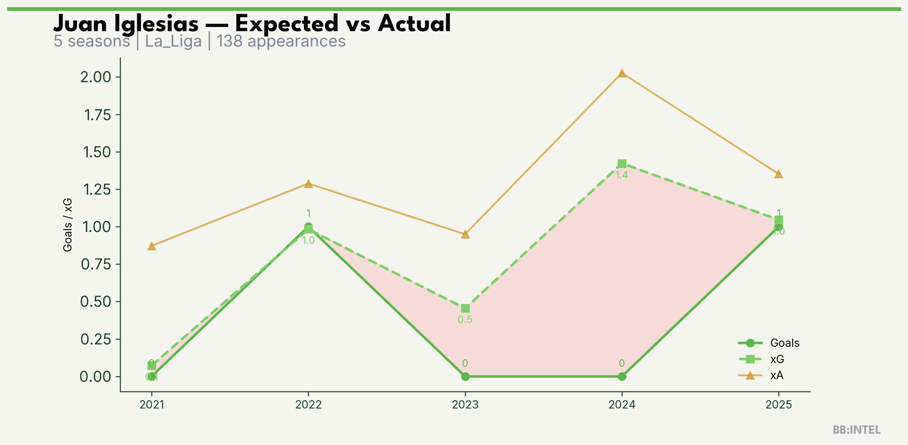| 2025/2026 | La_Liga | 26 | 1 | 1.0 | 1.4 | 19 | -0.0 |