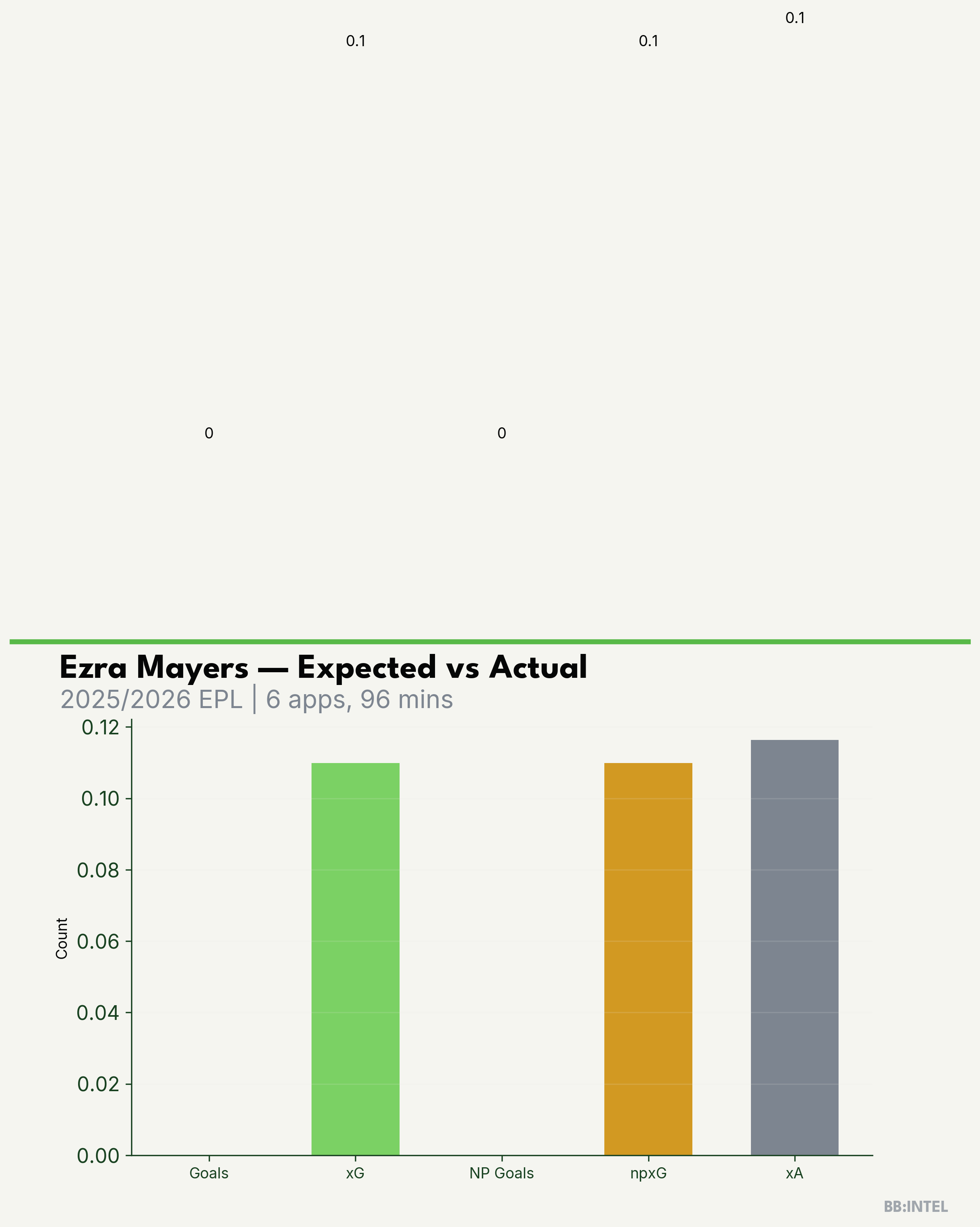 | 2025/2026 | EPL | 6 | 0 | 0.1 | 0.1 | 1 | -0.1 |