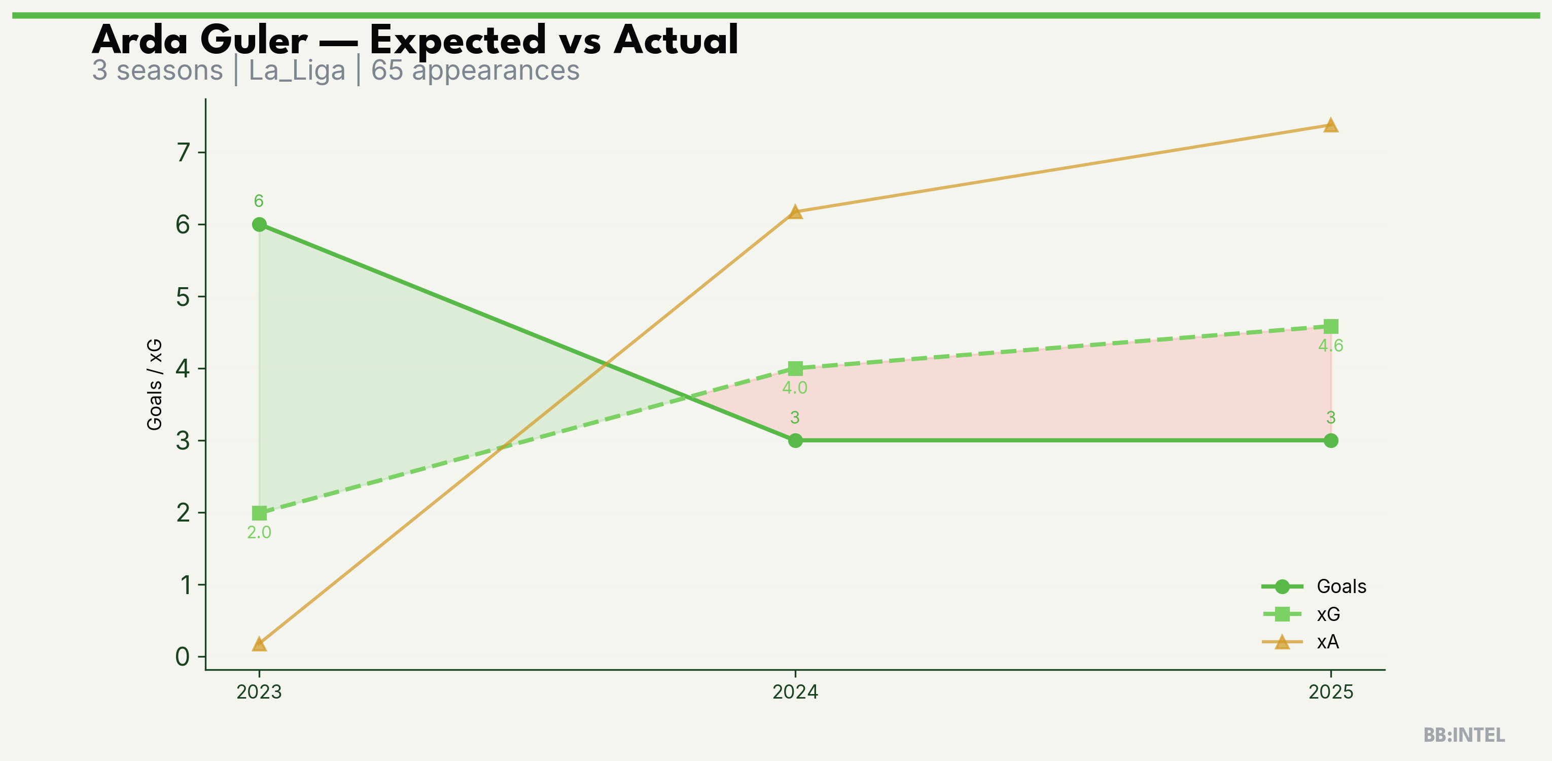 | 2025/2026 | La_Liga | 27 | 3 | 4.6 | 7.4 | 42 | -1.6 |