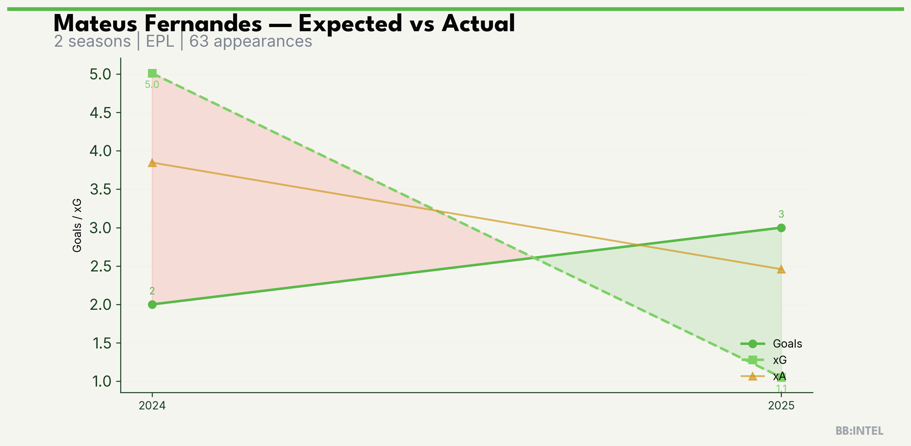 | 2024/2025 | EPL | 36 | 2 | 5.0 | 3.8 | 42 | -3.0 |