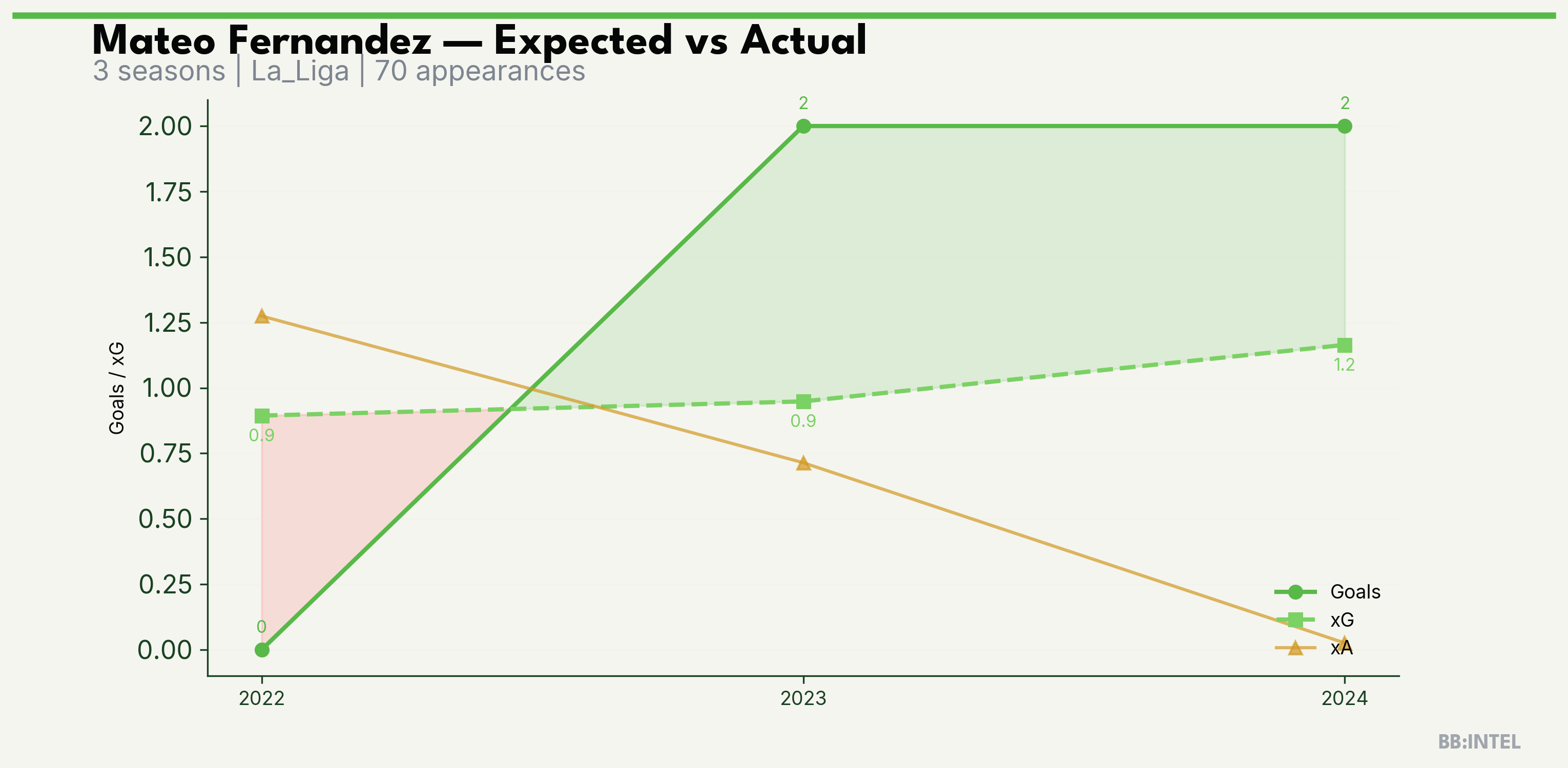 | 2023/2024 | La_Liga | 27 | 2 | 0.9 | 0.7 | 5 | +1.1 |