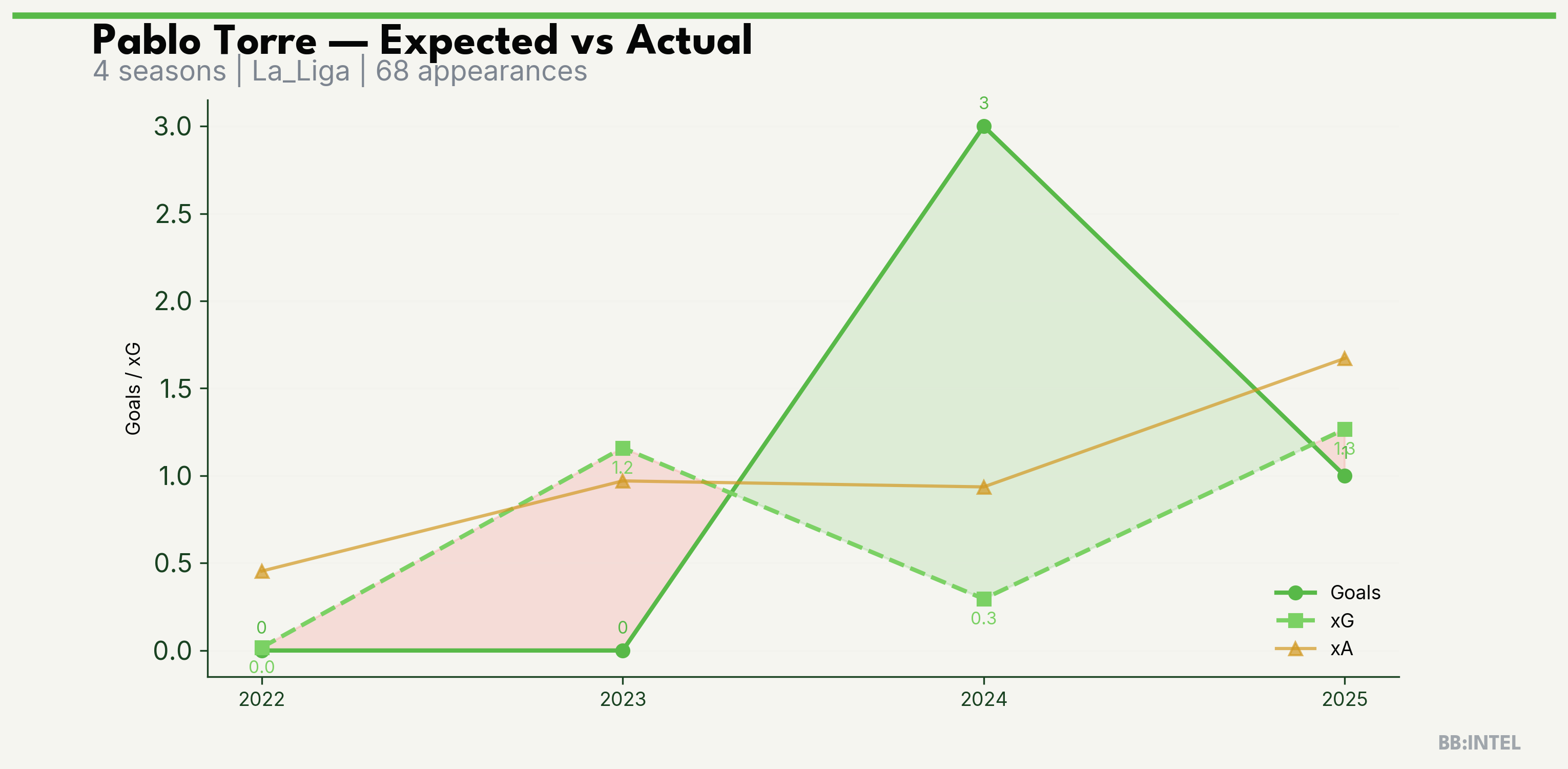 | 2024/2025 | La_Liga | 10 | 3 | 0.3 | 0.9 | 6 | +2.7 |