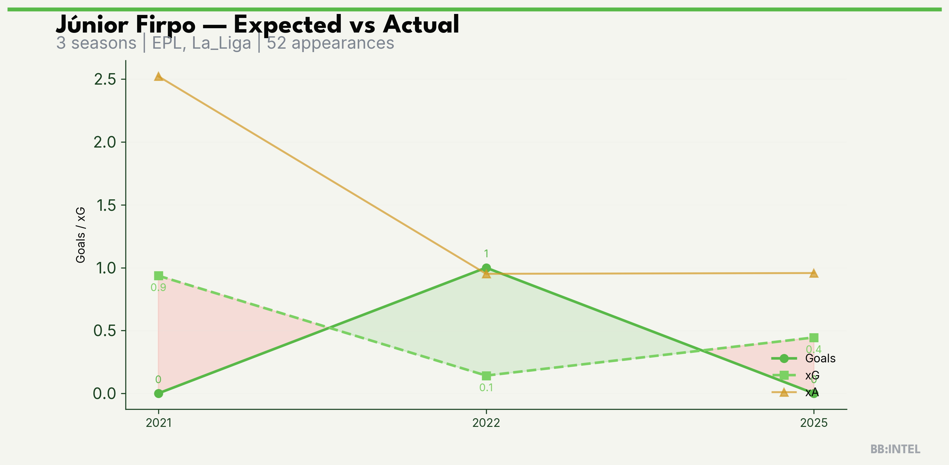 | 2025/2026 | La_Liga | 9 | 0 | 0.4 | 1.0 | 5 | -0.4 |