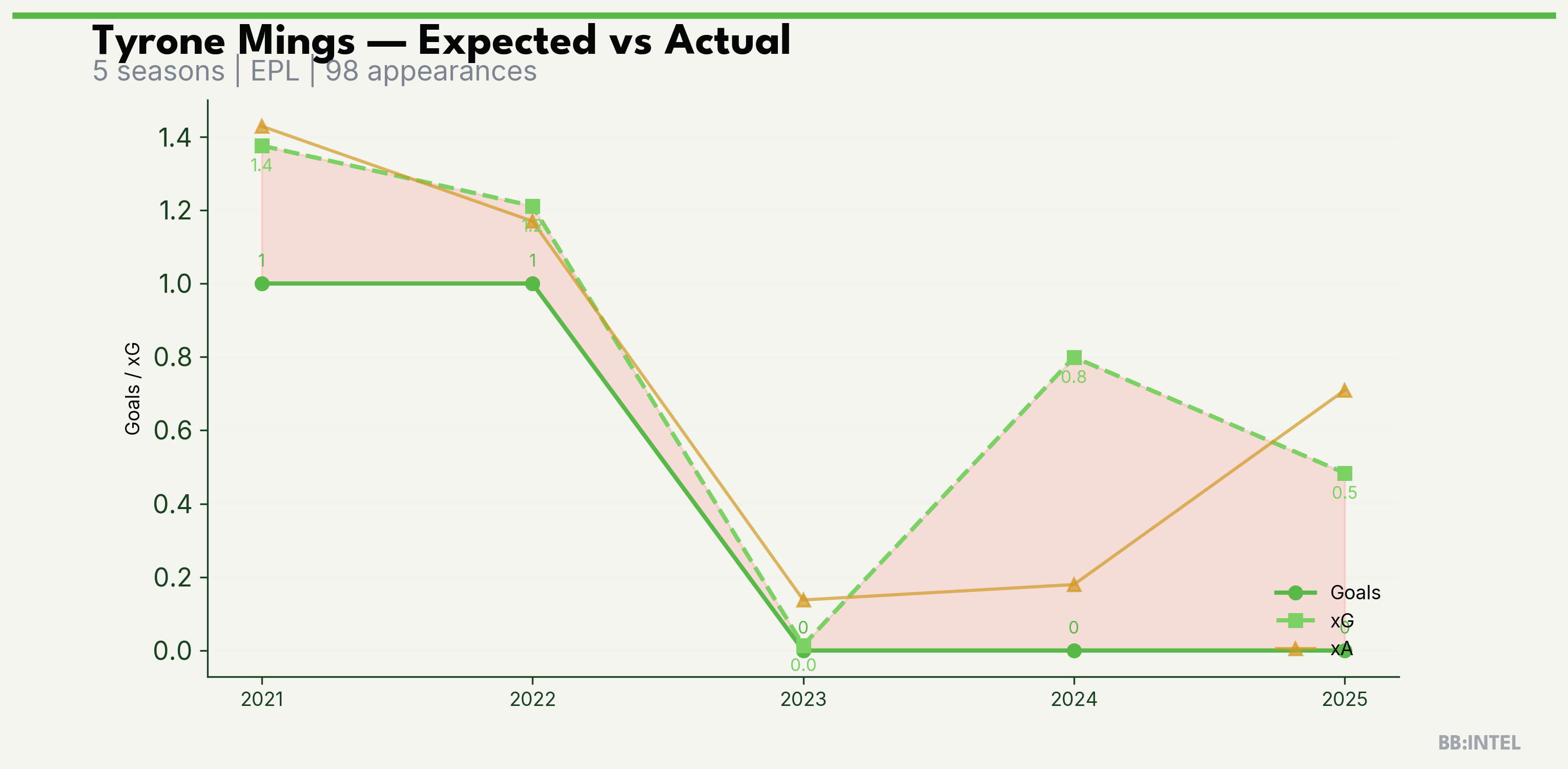 | 2025/2026 | EPL | 12 | 0 | 0.5 | 0.7 | 6 | -0.5 |