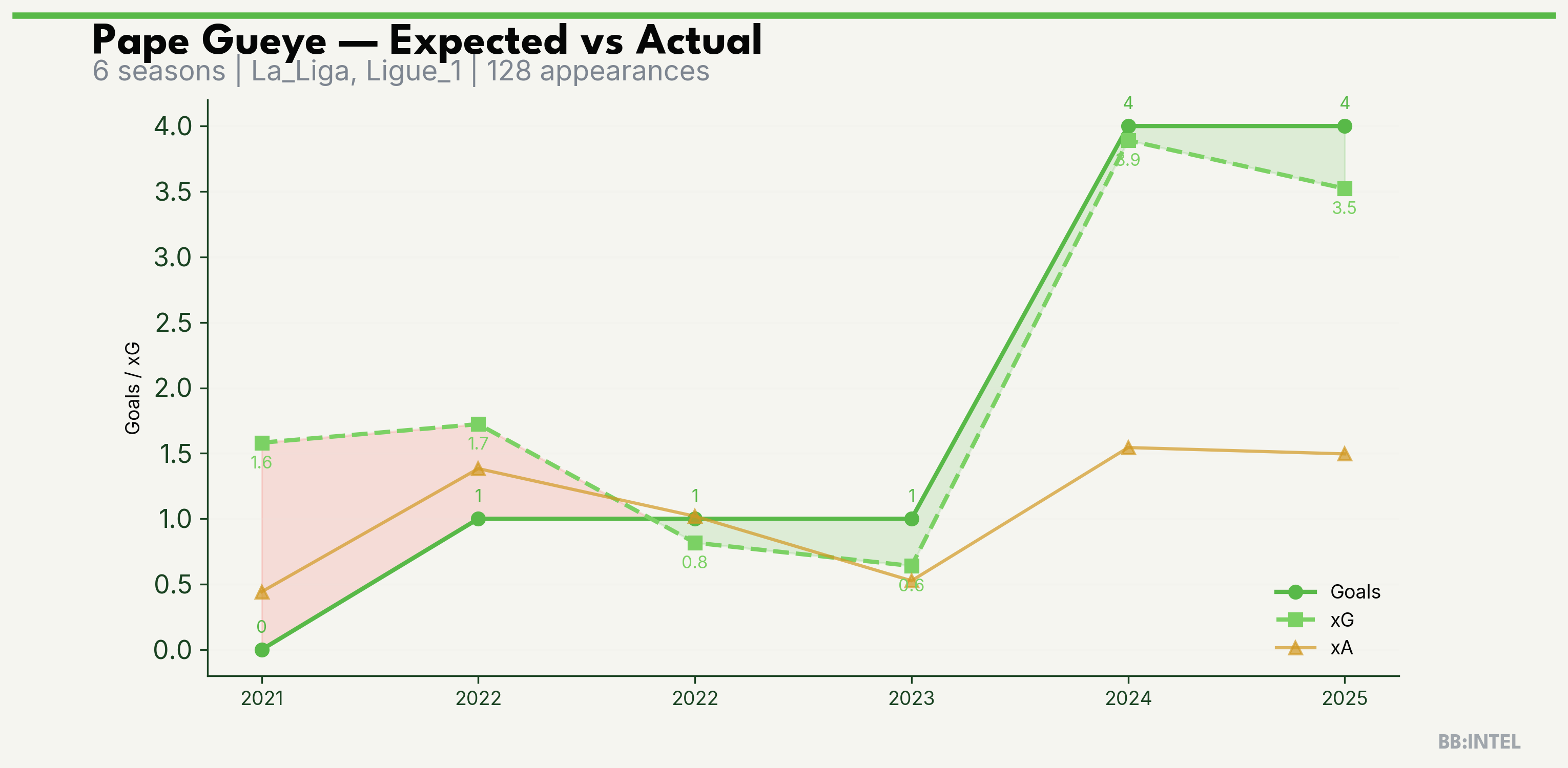 | 2025/2026 | La_Liga | 21 | 4 | 3.5 | 1.5 | 32 | +0.5 |