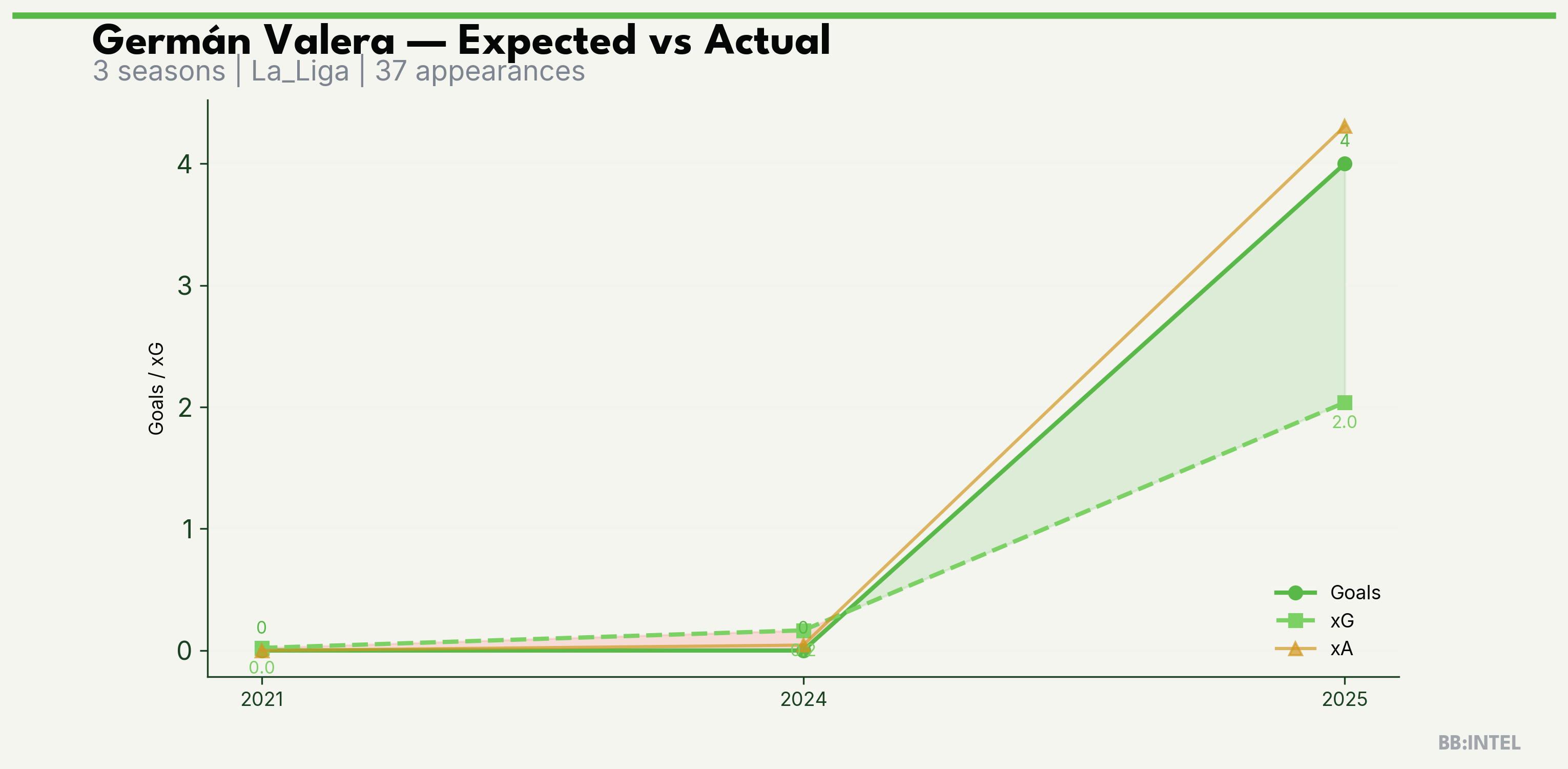| 2025/2026 | La_Liga | 26 | 4 | 2.0 | 4.3 | 20 | +2.0 |
