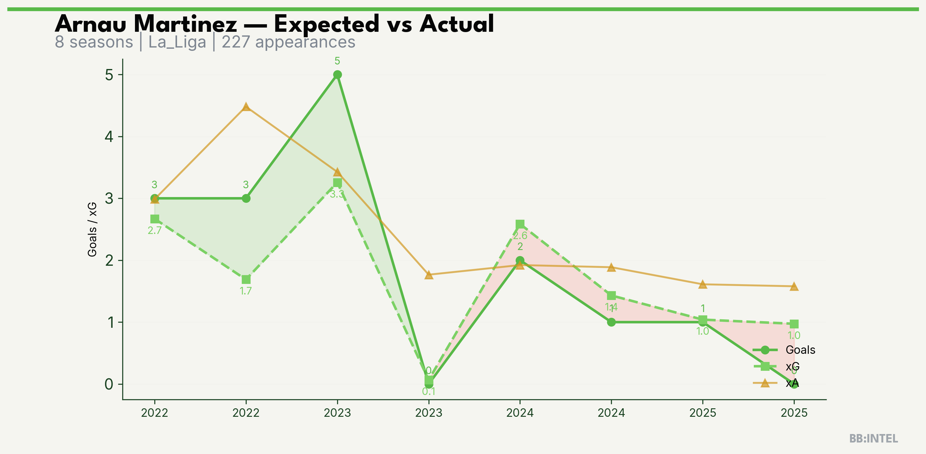 | 2025/2026 | La_Liga | 25 | 0 | 1.0 | 1.6 | 9 | -1.0 |