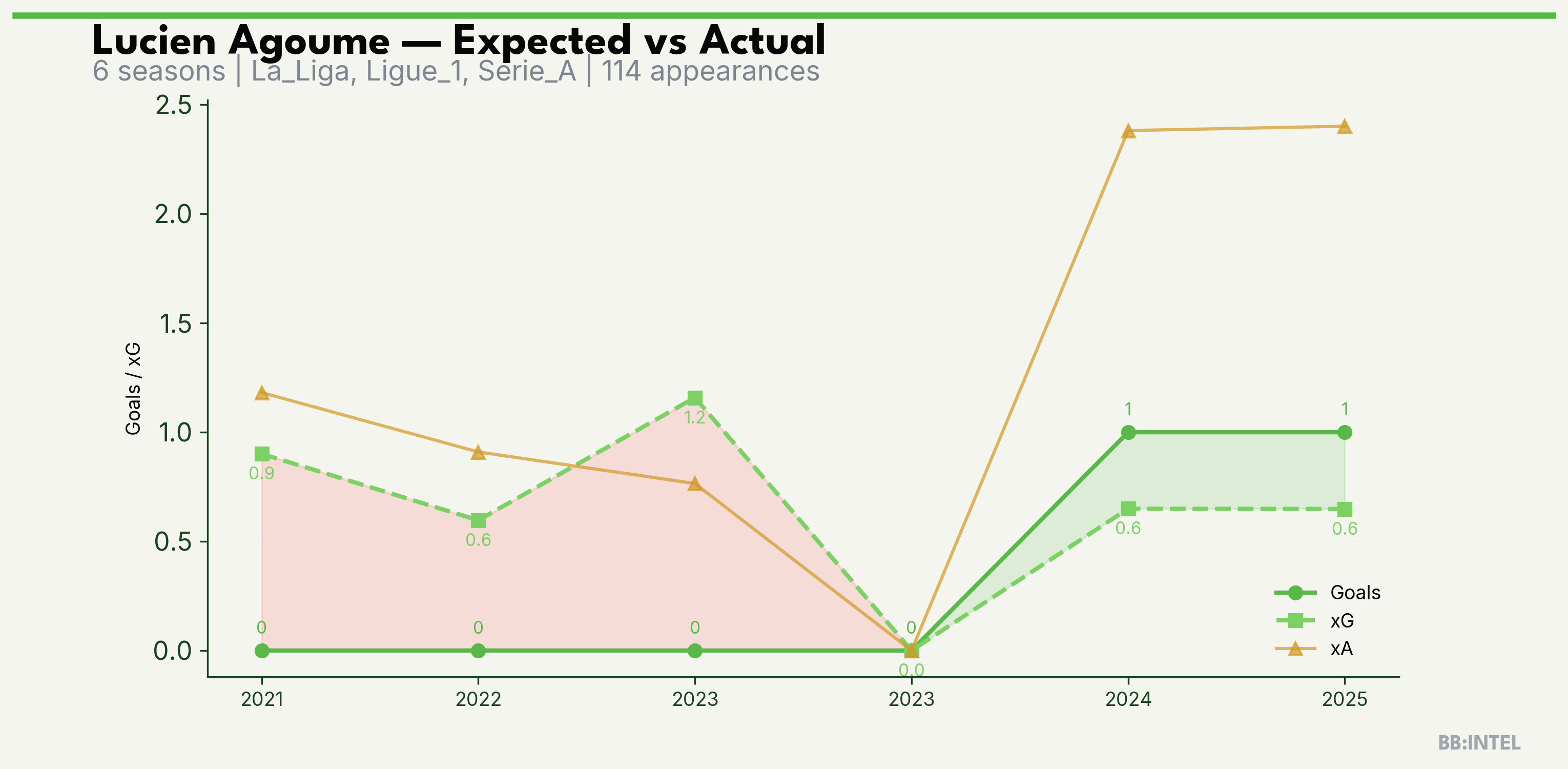 | 2025/2026 | La_Liga | 24 | 1 | 0.6 | 2.4 | 11 | +0.4 |