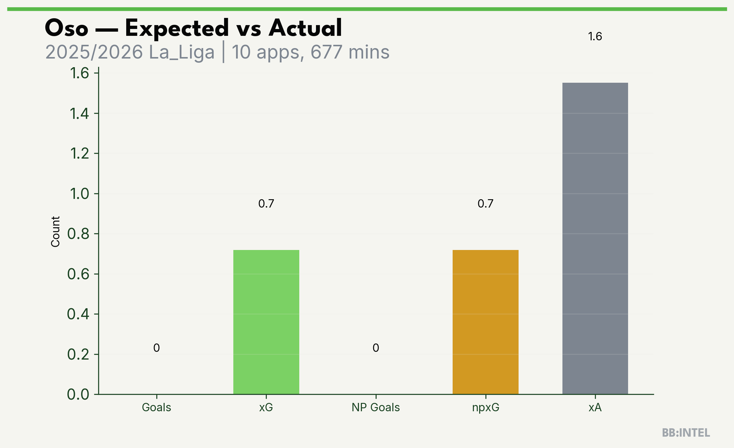 | 2025/2026 | La_Liga | 10 | 0 | 0.7 | 1.6 | 8 | -0.7 |