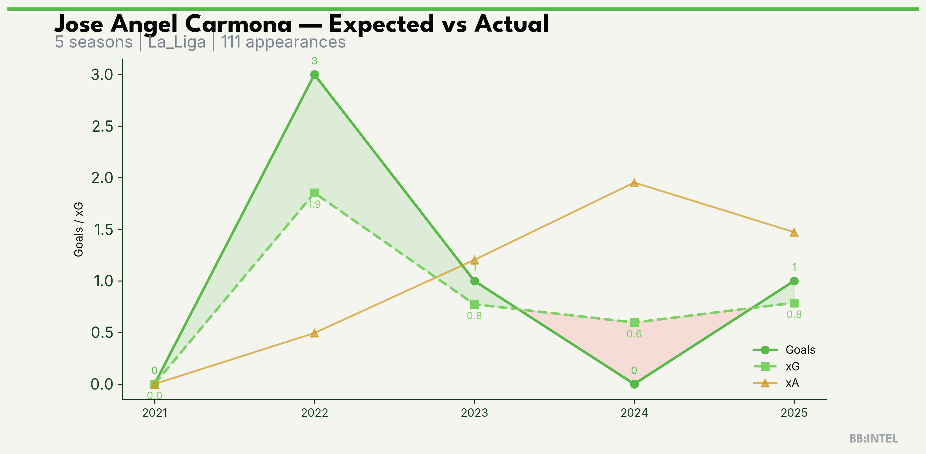 | 2025/2026 | La_Liga | 25 | 1 | 0.8 | 1.5 | 17 | +0.2 |