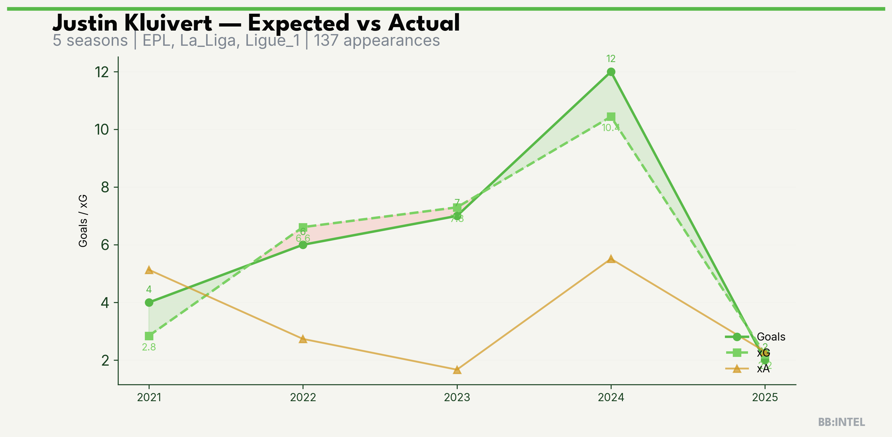 | 2024/2025 | EPL | 34 | 12 | 10.4 | 5.5 | 63 | +1.6 |