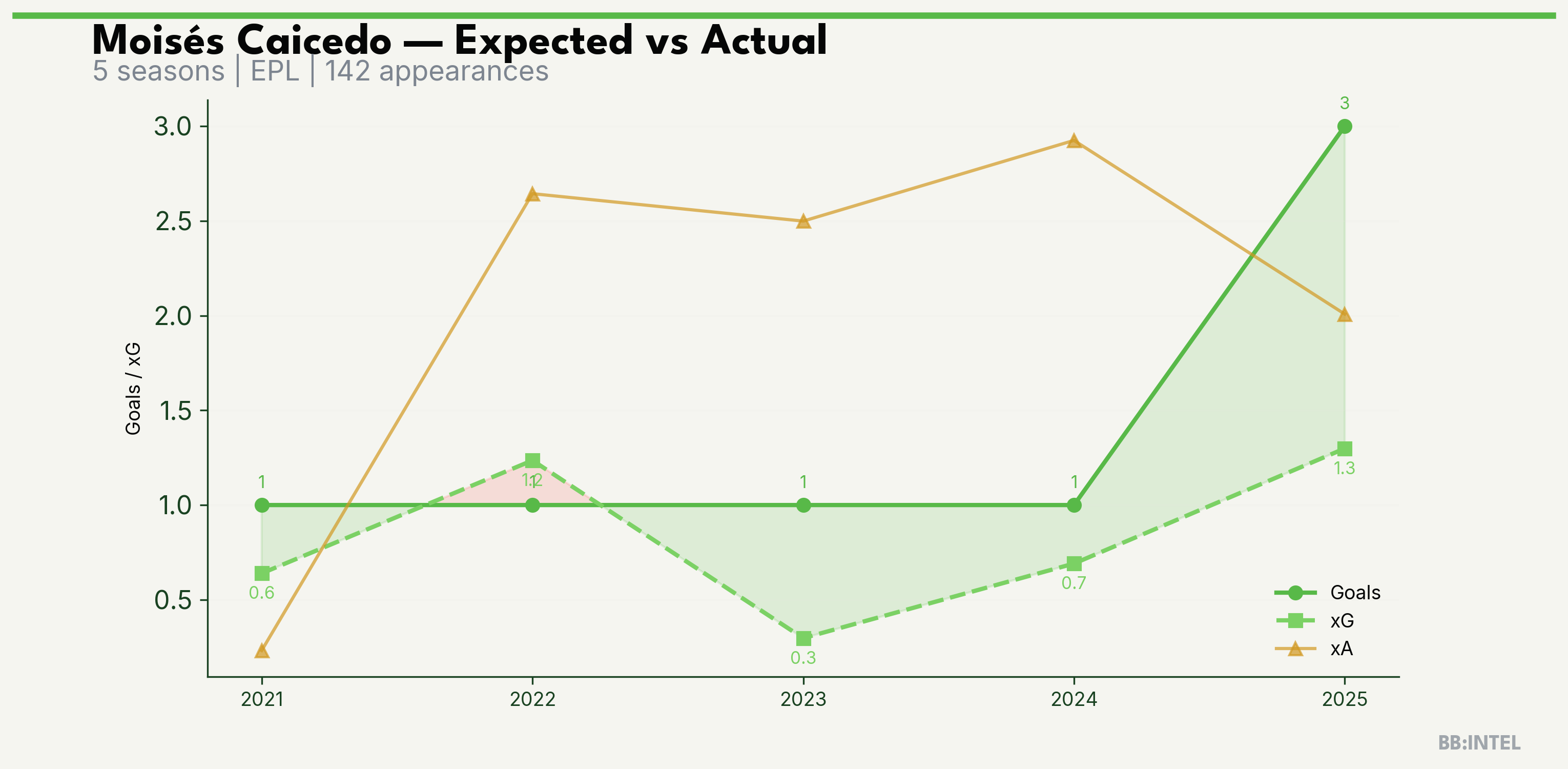 | 2025/2026 | EPL | 24 | 3 | 1.3 | 2.0 | 20 | +1.7 |